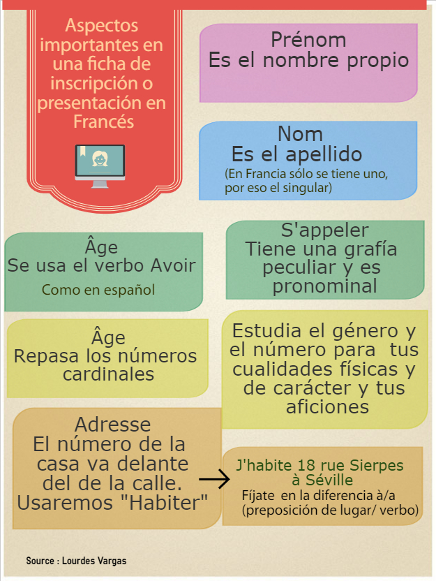 Guía para completar una hoja de inscripción y presentación de francés Mira estos ejemplos: Source J’aime le français Compártelo: Compartir en X (Se abre en una ventana nueva) X Comparte en Facebook (Se abre en una ventana nueva) Facebook Me gusta Cargando...