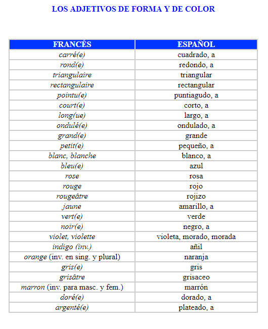 Ejemplos de Concordancia del adjetivo calificativo en francés